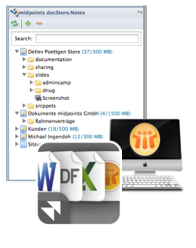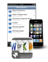 With the midpoints doc.Store, available for free in the iTunes Store, you can access -after successful authentication- ease and secure the filled repositories and have the possibility to use your stored informations on the road.